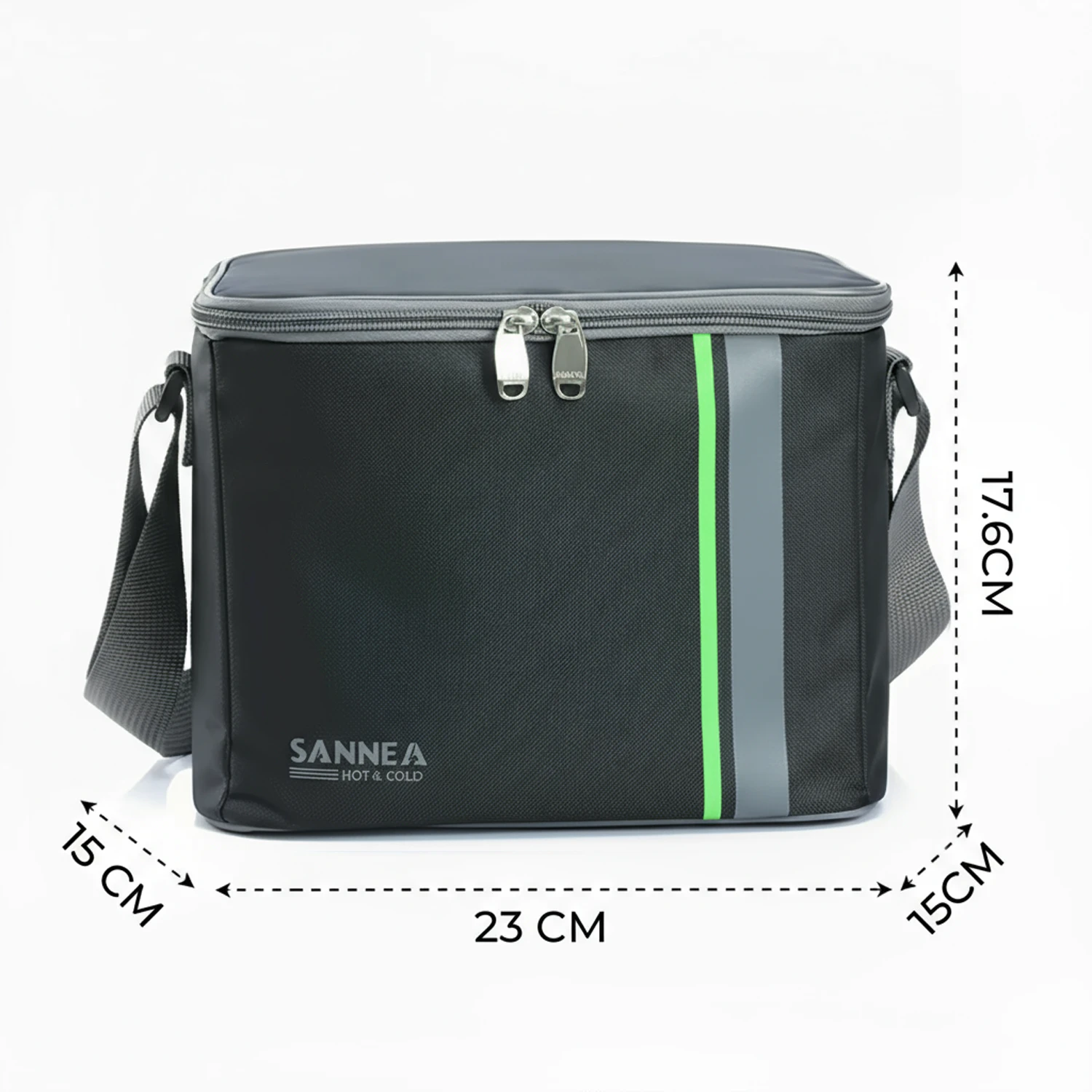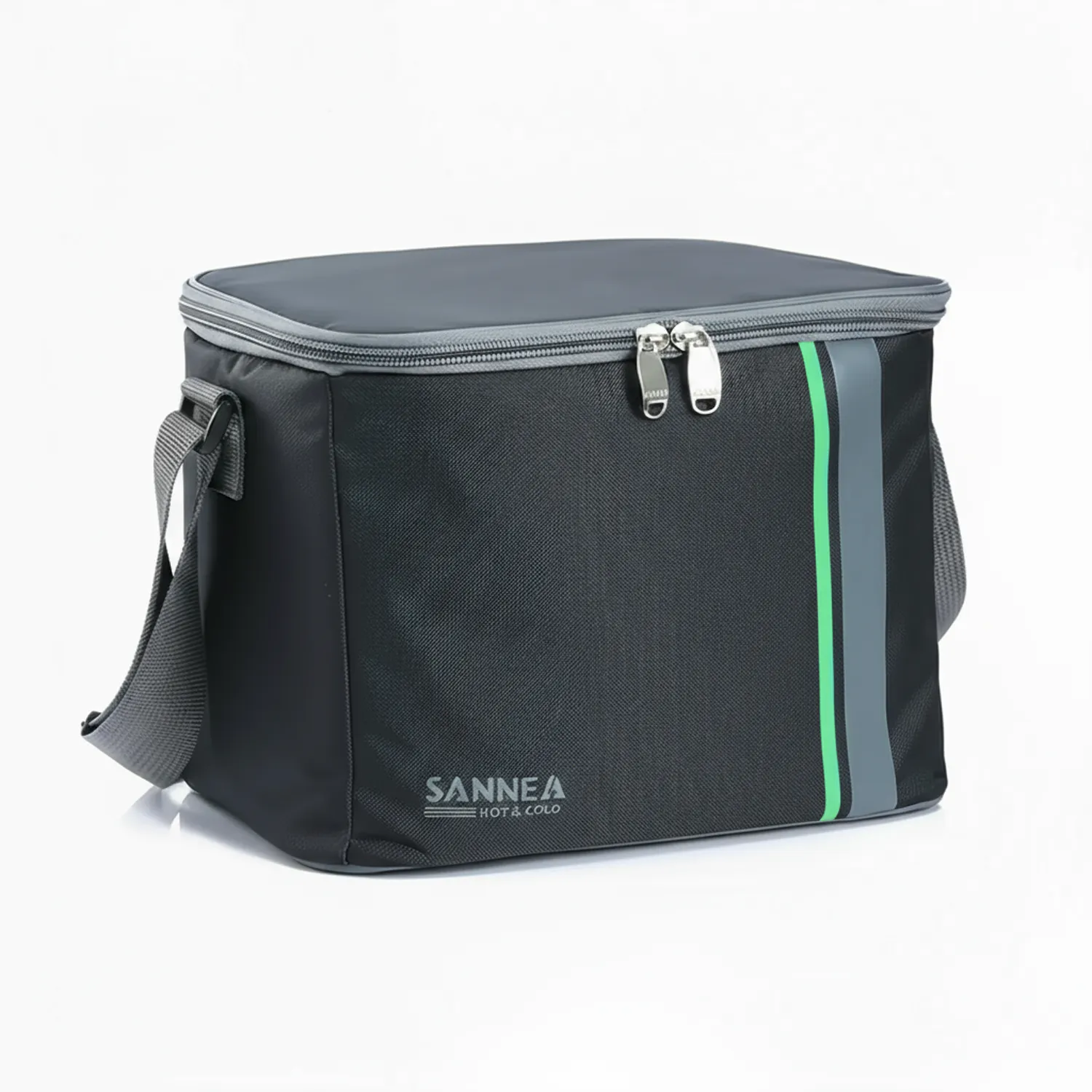 حقيبة أنيقة بلون أسود مع خط اخضر، تحافظ على حرارة أو برودة الأطعمة والمشروبات .