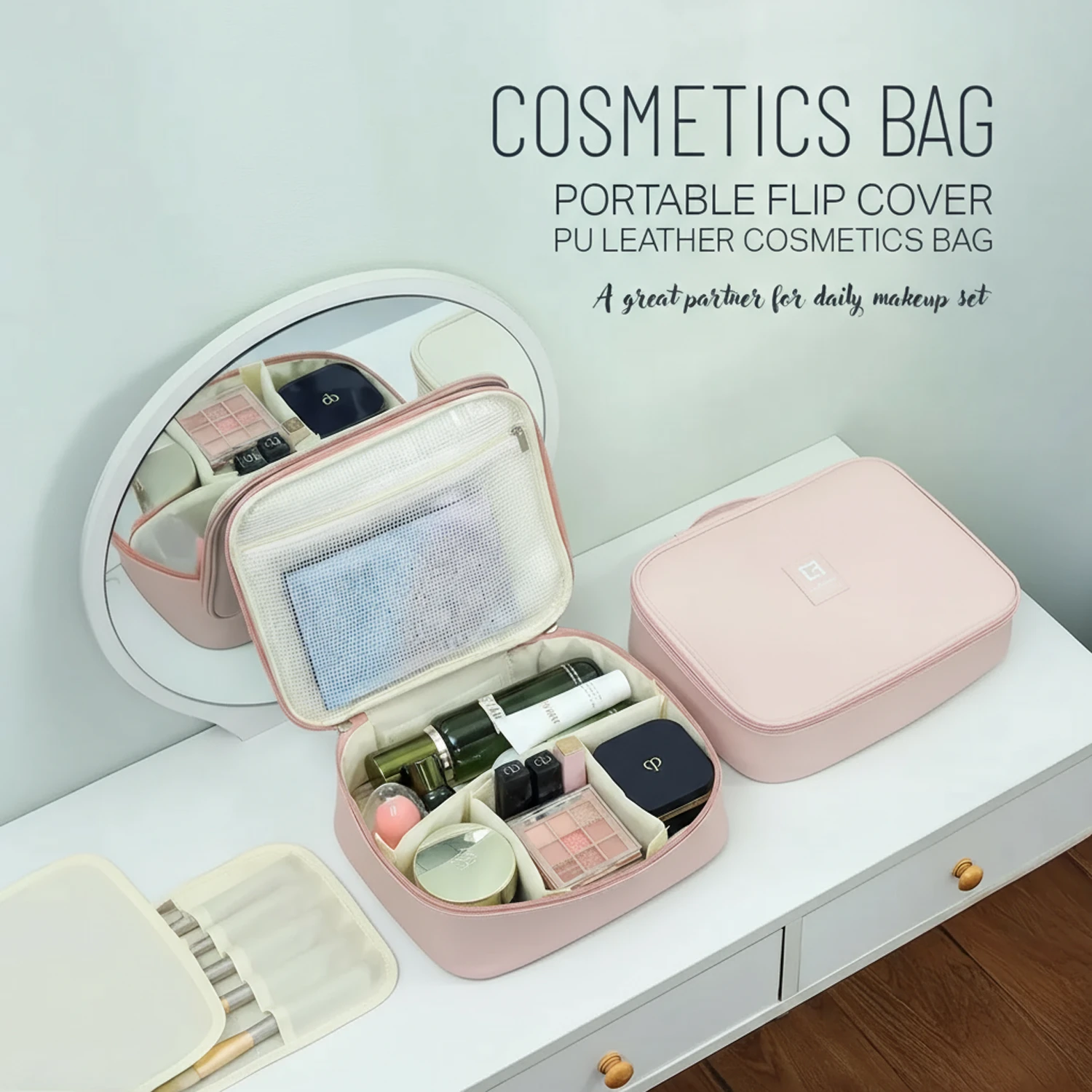 حقيبة مستحضرات التجميل الفاخرة بفواصل داخلية قابلة للتنظيم، يمكنك ترتيب منتجاتك المفضلة مثل الكريمات، والعطور، والفرش، وأدوات المكياج بطريقة مرتبة ومريحة