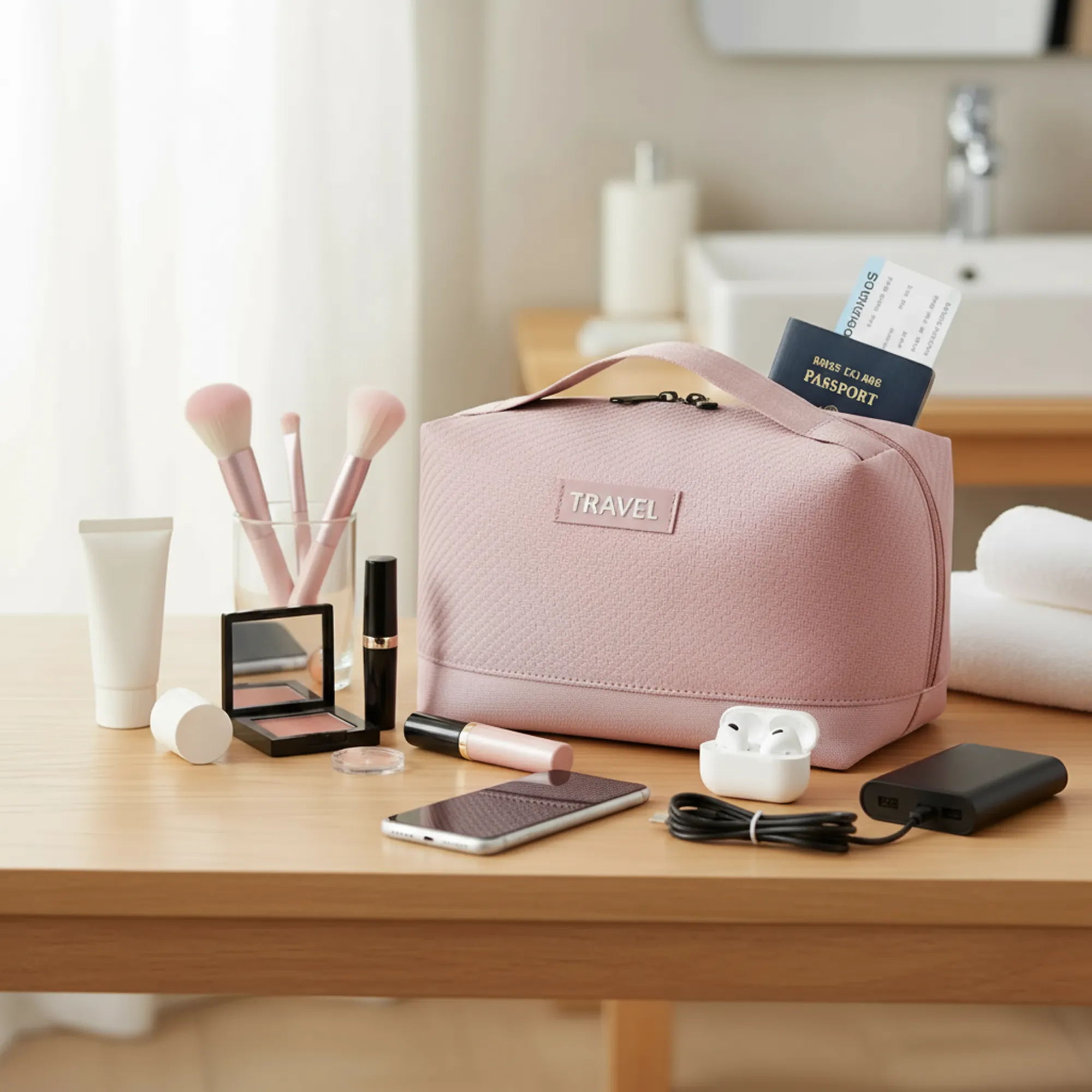 حقيبة يدوية متعددة الاستخدام لتنظيم أدوات السفر لون وردي
