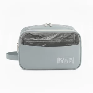 حقيبة مستلزمات التجميل لون رمادي مع واجهة شفافة