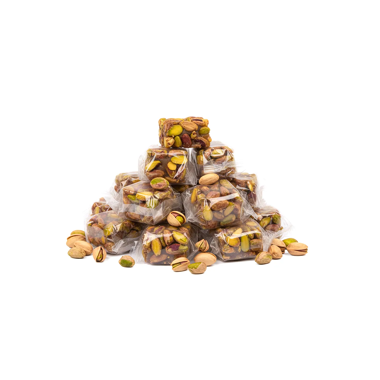 دلل حواسك مع رحة الحلقوم الفاخرة المغطاة بحبات الفستق الكاملة. مزيج مثالي يجمع بين الطراوة المميزة للراحة والمذاق الغني للفستق الطبيعي، لتكون خيارا راقيا في الضيافة .