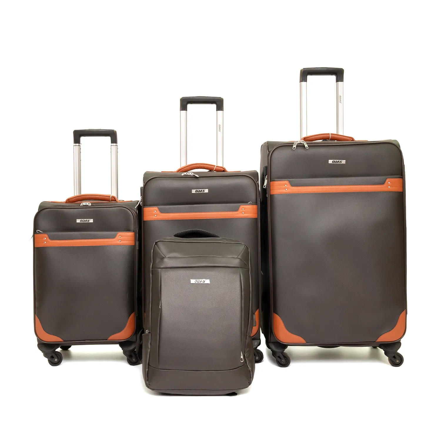 طقم حقائب سفر ODAS يتكون من 4قطع | تصميم أنيق ومقاسات متعددة من أربع قطع تشمل ثلاث حقائب سفر بمقاسات(28-24-20 إنش) وحقيبة ظهر. الحقائب مصنوعة من خامة متينة باللون البني الداكن