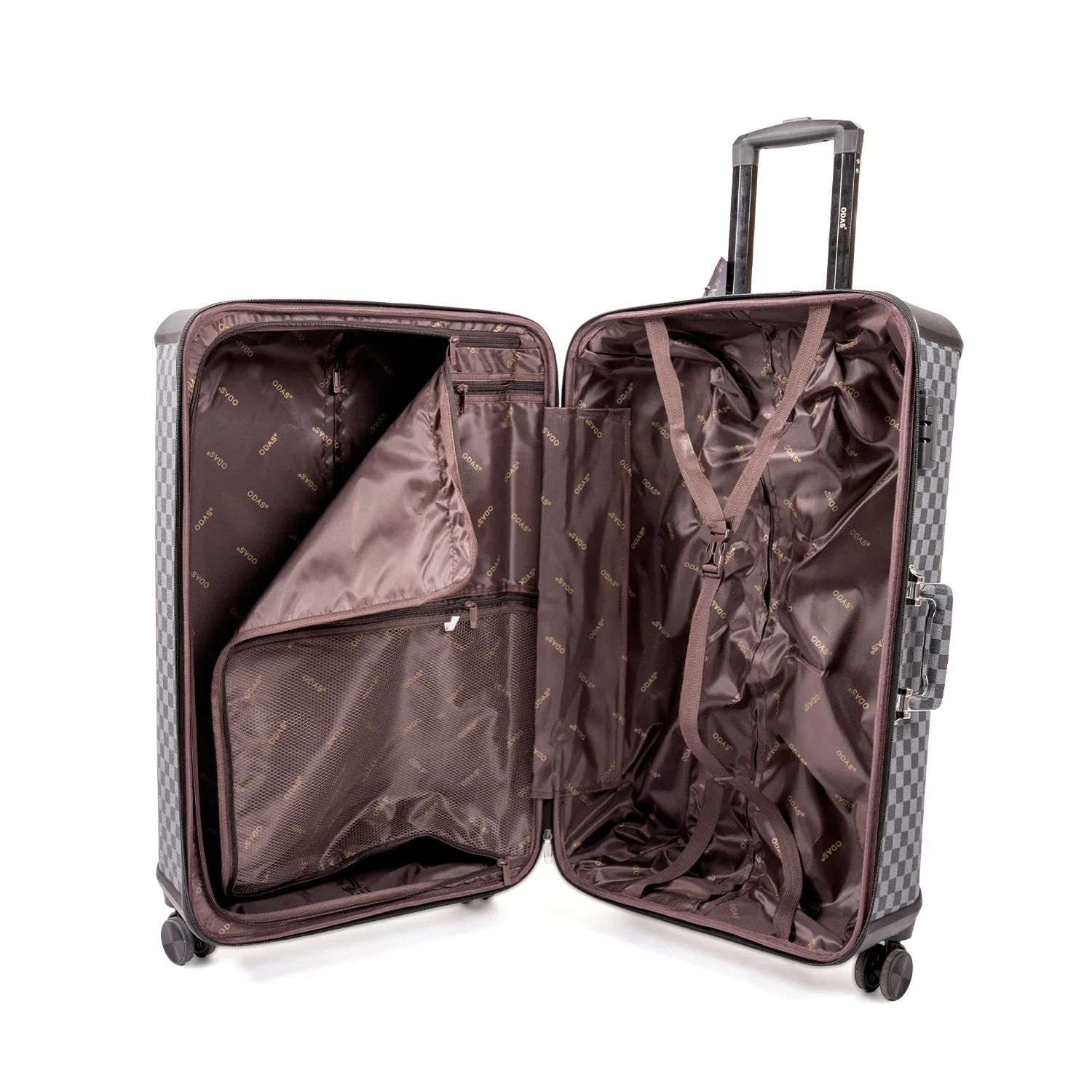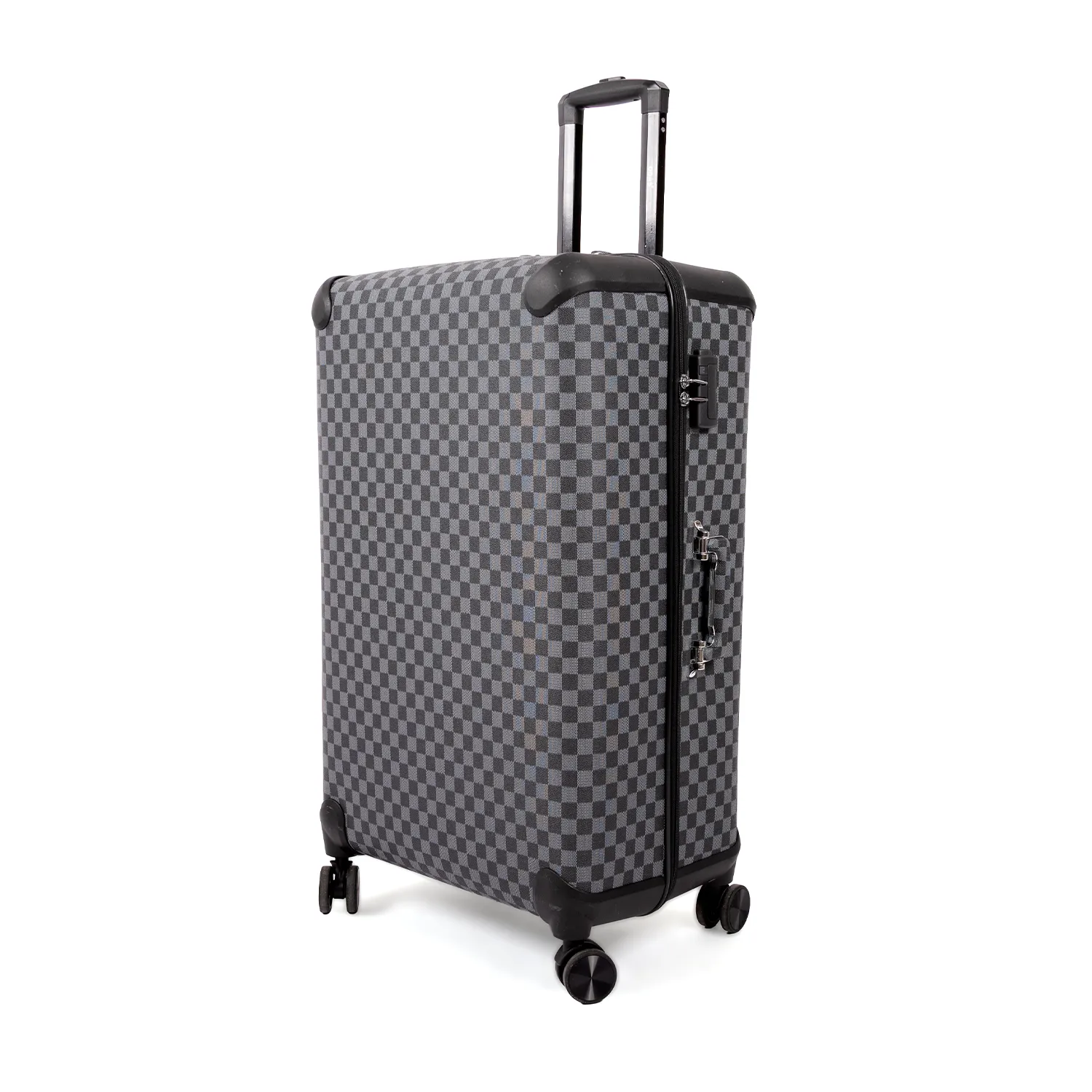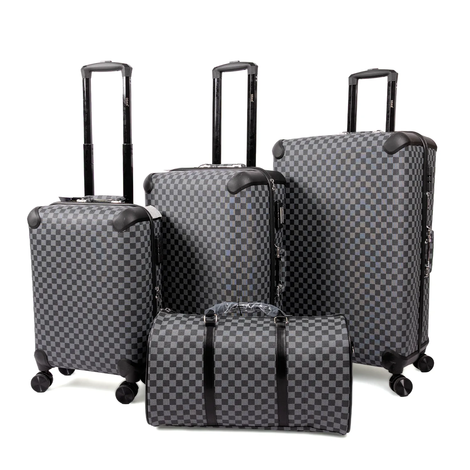طقم شنط سفر،باحجام مختلفة (28 إنش -24إنش-20إنش مع شنطة يد مناسبة لحمل الاغراض الشخصية) مميز بتصميم مربعات عصري (رمادي/اسود) ، مع جودة تصنيع عالية تتحمل الاستخدام المتكرر في السفر والرحلات