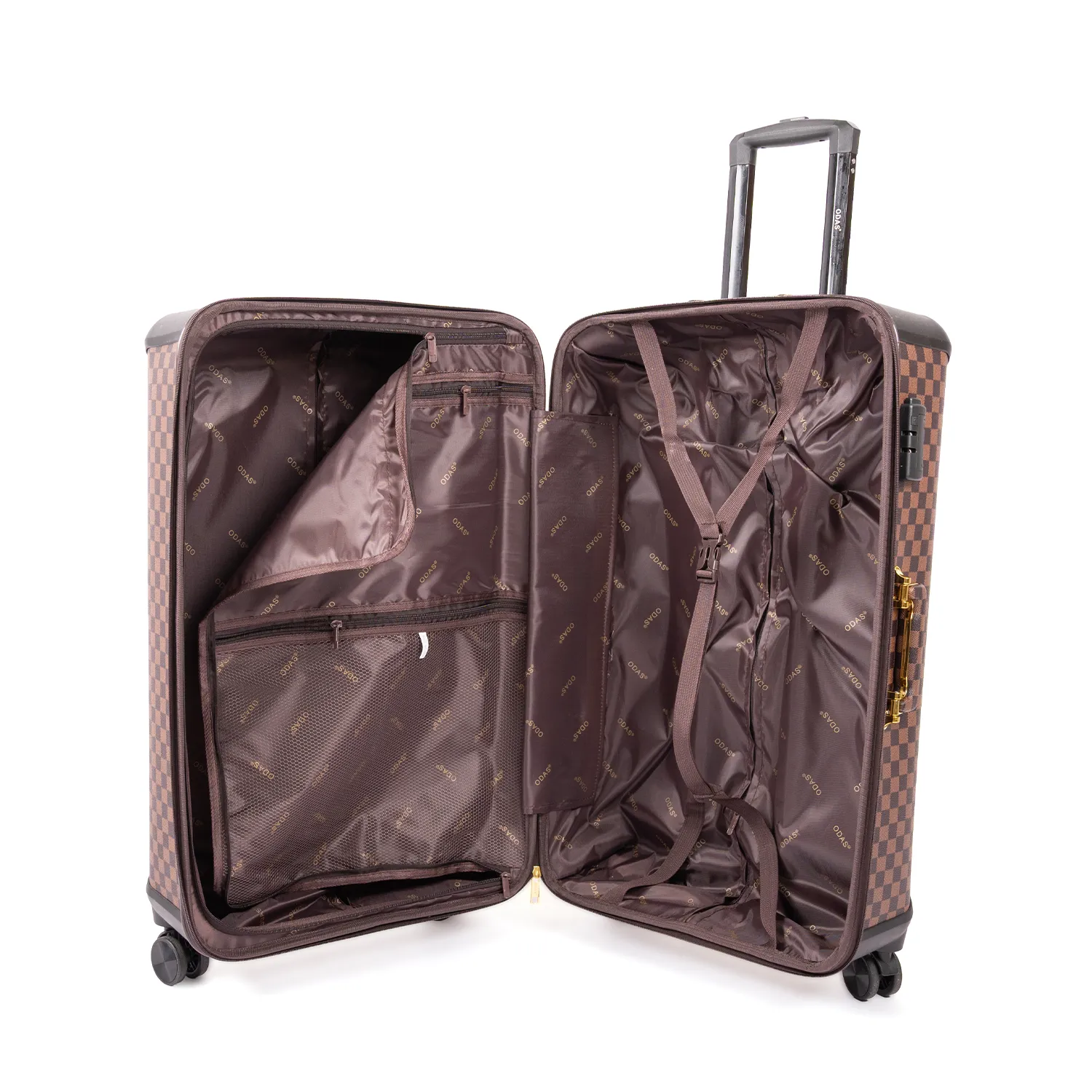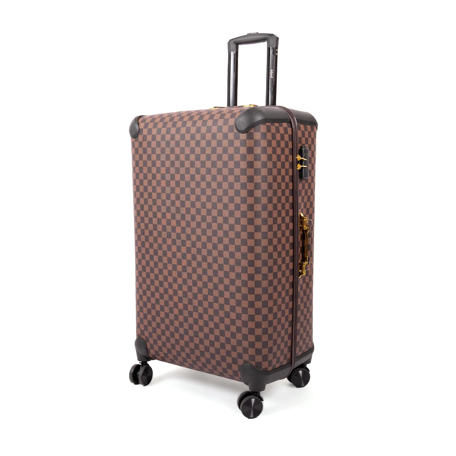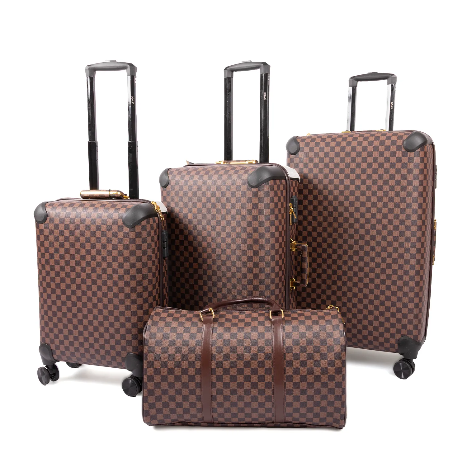 طقم أنيق يجمع بين الفخامة والعملية ،باحجام مختلفة (28 إنش -24إنش-20إنش مع شنطة يد مناسبة لحمل الاغراض الشخصية)، بتصميم مربعات كلاسيكي باللون البني جذاب ولمسات نهائية راقية، مناسب للمسافرين الباحثين عن المظهر المميز مع الأداء العالي