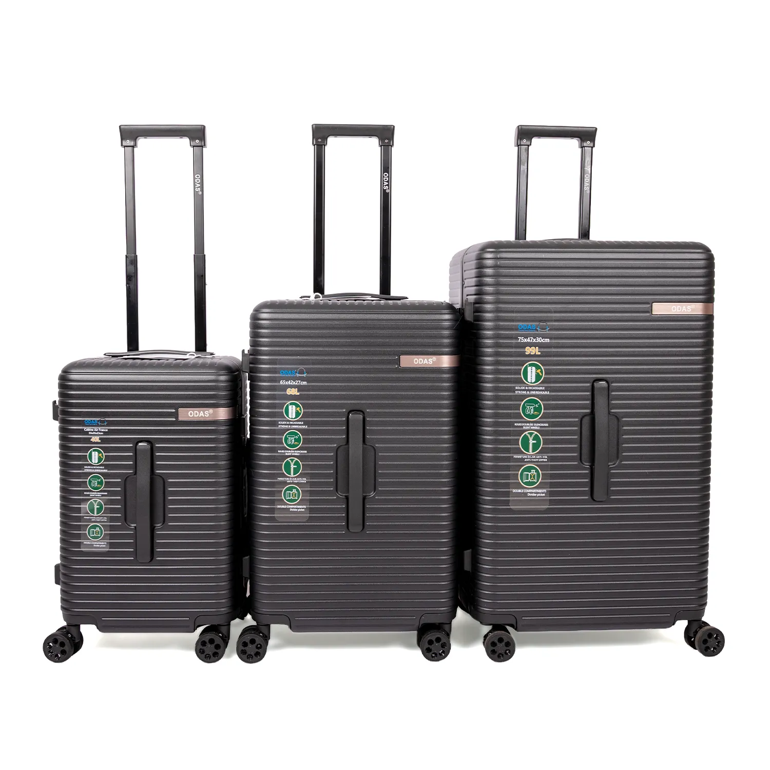 طقم شنط لون اسود مميز ياتي باحجام مناسبة (28 إنش-24إنش-20إنش) يتميز بجوده عالية وتصميم جمع بين الاناقة والمتانةوالفخامة