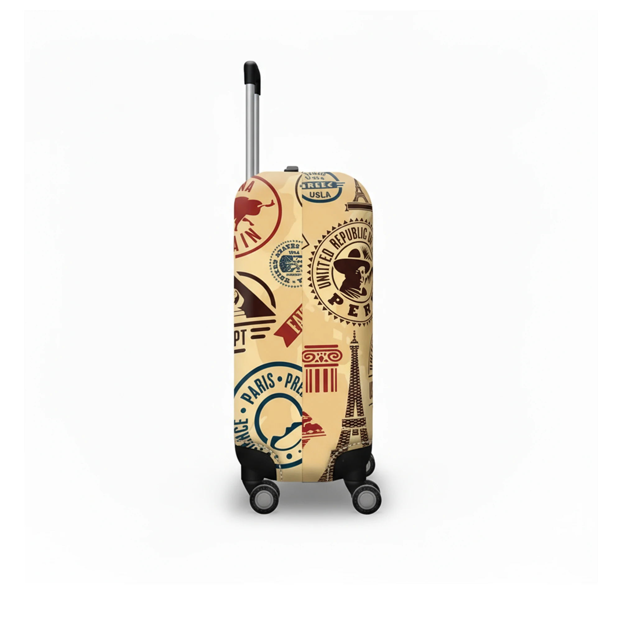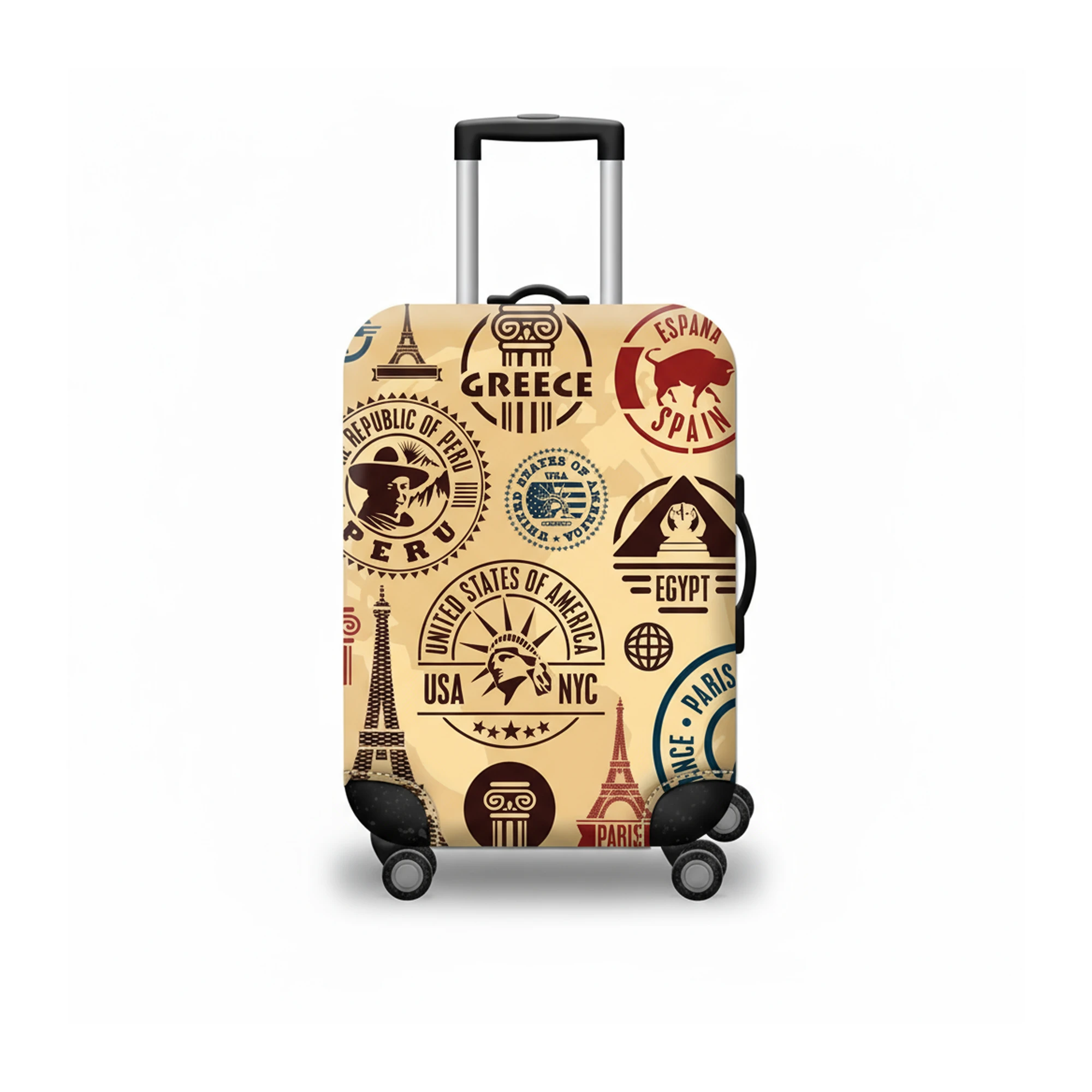 غطاء انيق وعصري لشنط السفر سهل التركيب والازالة مصنوع من خامة مرنة ومتينة تحمي الحقيبة من الخدوش، الأتربة، مع فتحات دقيقة للمقبض والعجلات لسهولة الاستخدام.
