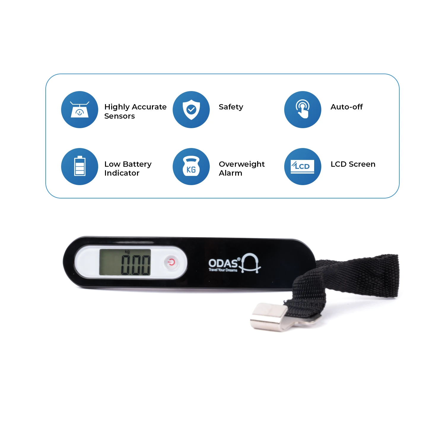 ميزان امتعة الكتروني رقمي محمول باليد للسفر مع شاشة تظهر حجم الوزن